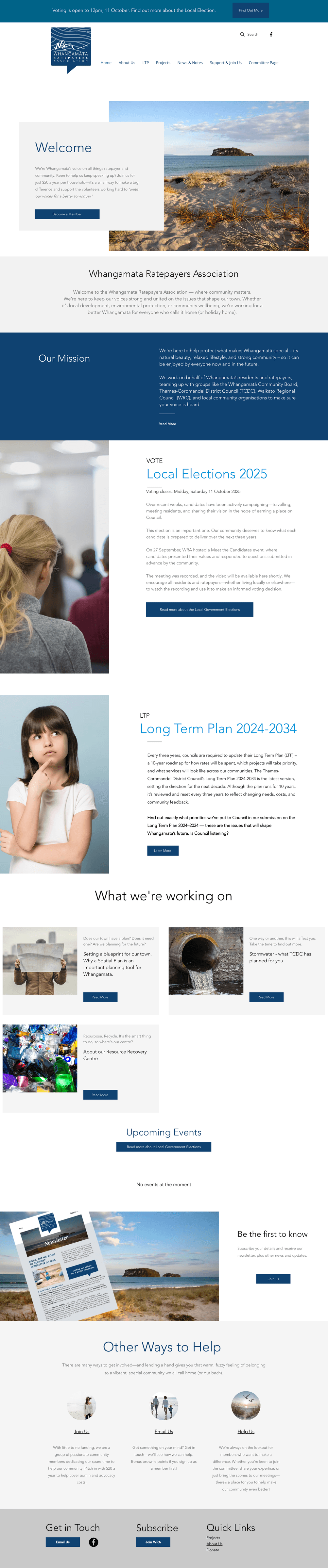 The new brand and website have positioned the Whangamatā Ratepayers Association as a modern, professional, and approachable community organisation. The refreshed identity and digital presence have strengthened communication, increased engagement, and provided a cohesive platform for ongoing community advocacy.